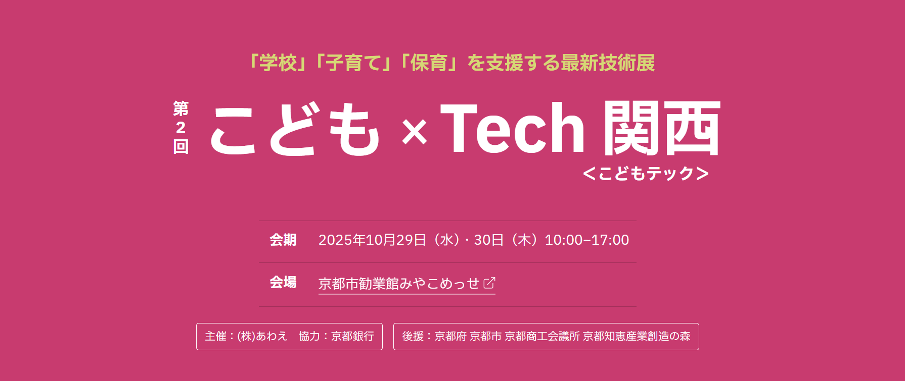 こども×Tech関西は、子育て・教育分野における最新技術やサービスを、地域へ直接届けることを目的に開催する展示会です。